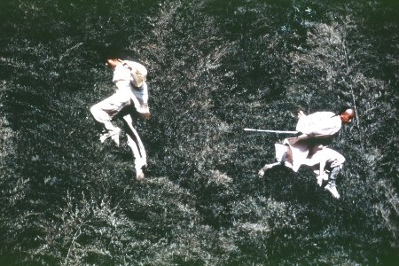 Another scene takes place among blowing bamboo trees (technically bamboo is a grass not a tree, but it matters not as Chow Yun Fat can balance perfectly on both). Another fight scene showcases pretty much every martial arts weapon there is, each weapon being eventually broken or destroyed by a magical ancient sword called The Green Destiny which everyone in the movie is after (an idea stolen from an earlier movie called The Maltese Falcon, perhaps you’ve heard of it).